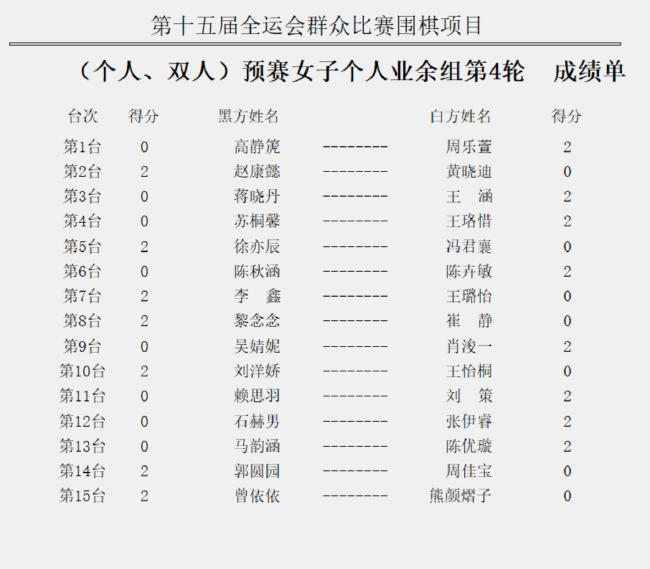 全運會圍棋預賽第4輪賽果 第5輪:王星昊VS羋昱廷