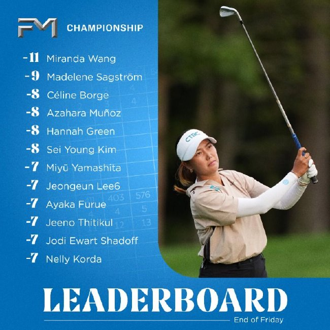 北京時間8月30日,中國高爾夫新秀王馨迎(Miranda Wang)在TPC波士頓球場舉行的賽第FM錦標賽次輪中上演絕地反擊。盡管比賽因暴雨多次中斷且未能在周五完賽,輪王領先26歲新星仍在最后三洞連續抓鳥,馨迎以總成績133桿(66-67),維劉低于標準桿11桿,鈺劉艷取得兩桿領先優勢。錦標