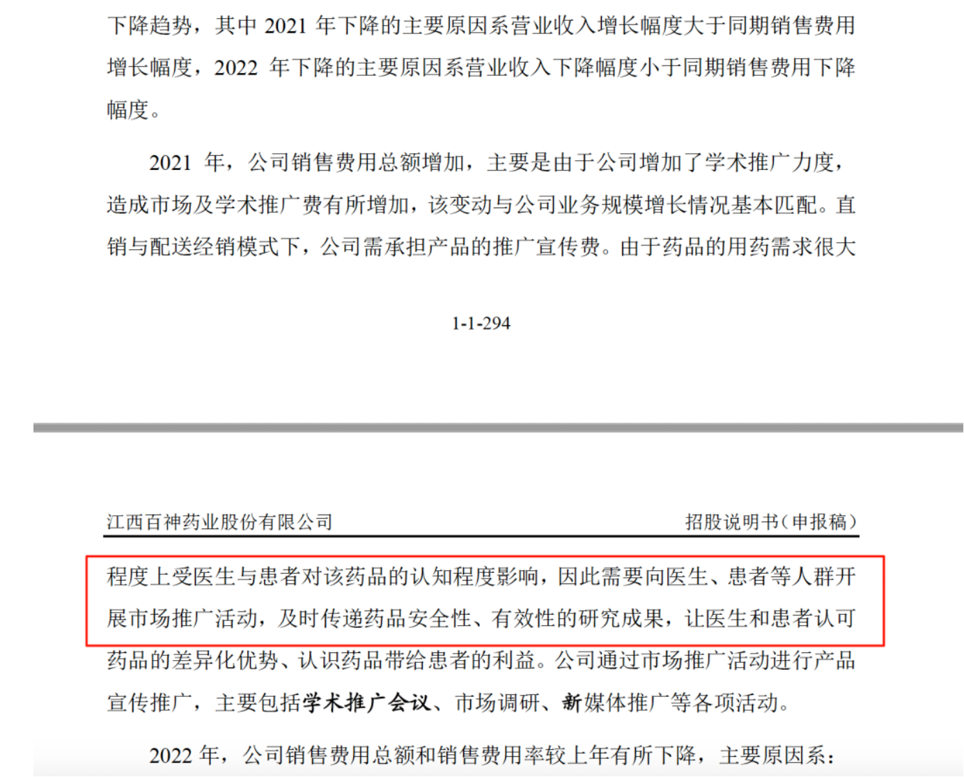 對此,百神藥業(yè)解釋稱,由于藥品的用藥需求很大程度上受醫(yī)生與患者對該藥品的認(rèn)知程度影響,因此需要向醫(yī)生、患者等人群開展市場推廣活動,及時(shí)傳遞藥品安全性、有效性的研究成果,讓醫(yī)生和患者認(rèn)可藥品的差異化優(yōu)勢、認(rèn)識藥品帶給患者的利益。