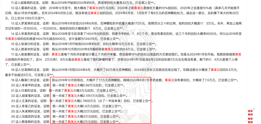只不過法院判決的案件中,雖然黃某云是以醫(yī)藥公司名義開展業(yè)務(wù),但其行賄行為屬于個(gè)人為獲取高額提成而實(shí)施,不符合單位犯罪特征。因此,判決結(jié)果并未涉及百神藥業(yè)。