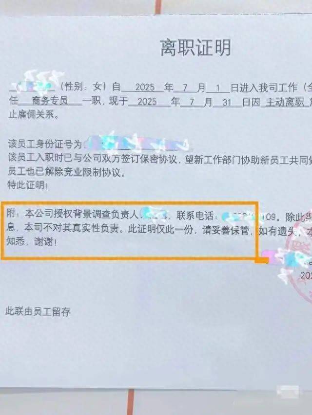 該網友認為,背景調查本身是正常流程,但將背調聯系方式直接印在離職證明上并不常見,“大部分公司都沒有這個信息”,擔心會對入職新公司造成困擾。