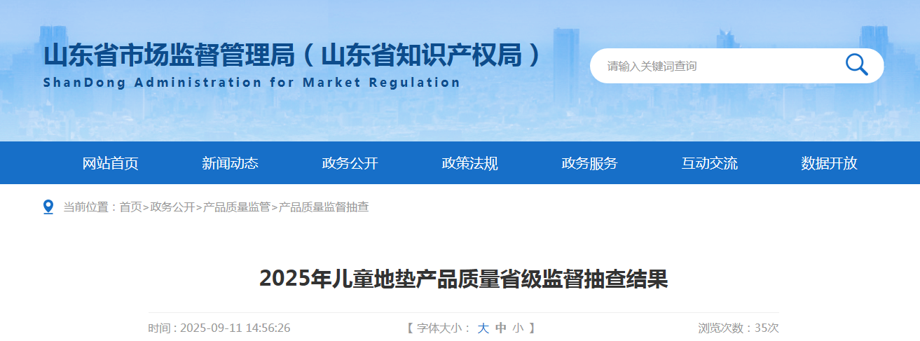 中國質量新聞網訊 近日,山東省市山東省市場監督管理局公布2025年兒童地墊產品質量省級監督抽查結果。場監查結2025年第1批省級監督抽查共抽查兒童地墊產品26批次,督管墊產督抽其中生產環節3批次,理局量省銷售環節19批次,公布果電商環節4批次。年兒