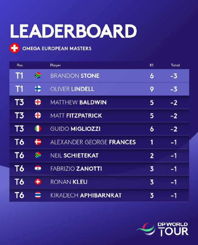 當地時間28日,羅并列領克蘭斯席瑞高爾夫俱樂部(Crans-sur-Sierre Golf Club)全天遭遇多次大霧中斷,歐洲至晚間8時許因光線不足暫停比賽時,大師僅8組選手完成18洞。賽遭塞半數選手首日未開桿,霧延包括李昊桐和丁文一,坎特將順延至29日上午比賽。羅并列領